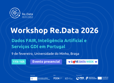 A Rede Nacional para a Gestão de Dados de Investigação – Re.Data, promove,  um evento internacional onde serão apresentados os resultados do Programa Nacional de Ciência Aberta e Dados Abertos de Investigação (PNCA e DAI), discutidos os desafios da gestão de dados FAIR e o papel da Inteligência Artificial nas infraestruturas de dados de investigação.